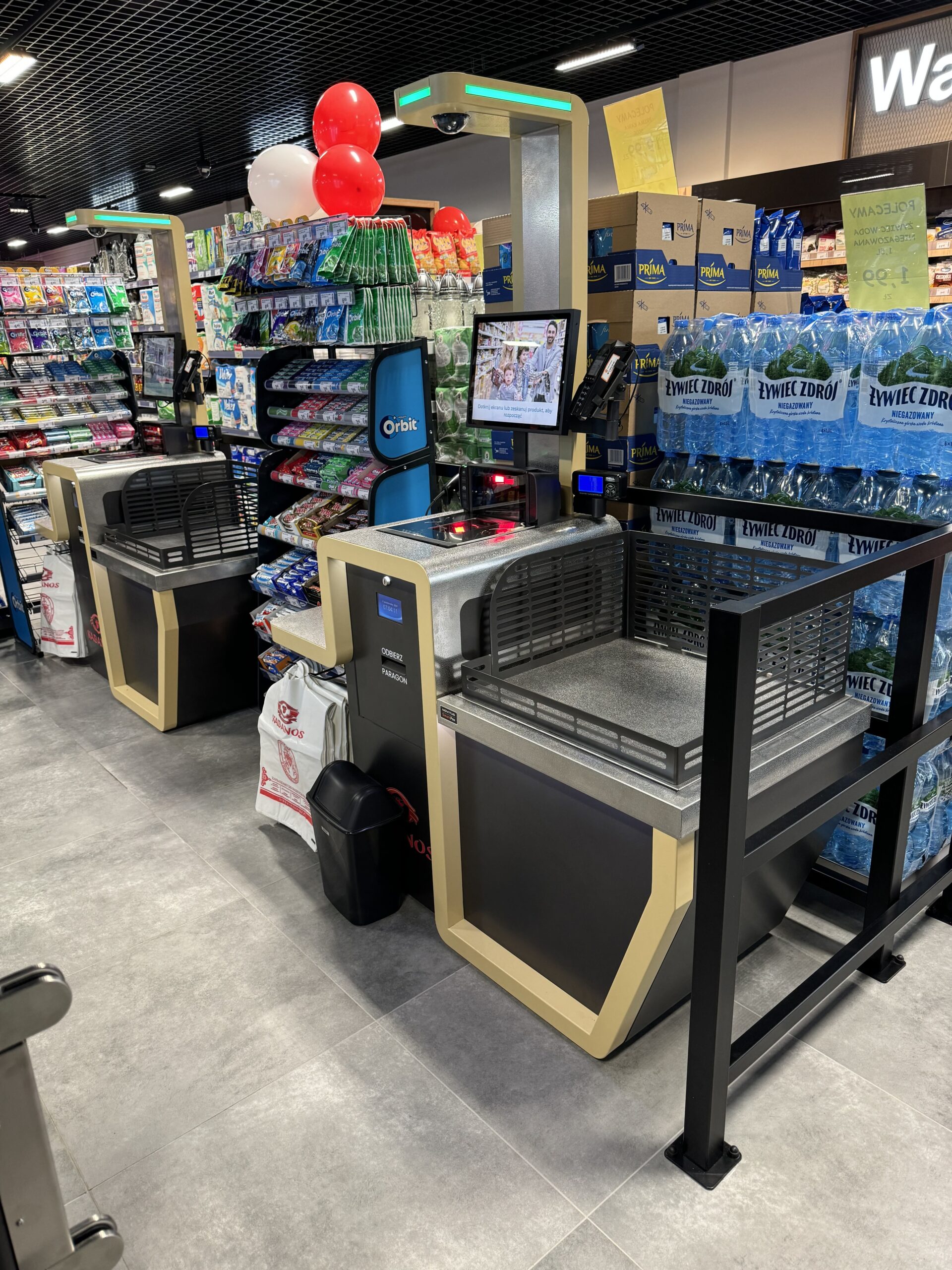 Boksy kasowe LimeLine z drewnianymi akcentami i kasy samoobsługowe SmartPos to nowoczesne rozwiązania, które idealnie wpisują się w estetykę sklepu.